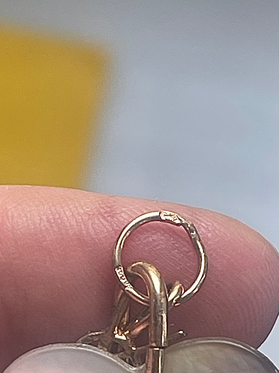 A beautiful and rare vintage Yves Saint Laurent pendant, originally part of a different necklace, now elegantly mounted on a black leather YSL Parfums cord. The pendant features a heart shaped seashell design with rose gold plated solid silver hoops. It shows gentle signs of age and a small, slightly visible chip that adds to its authentic rustic vintage charm.