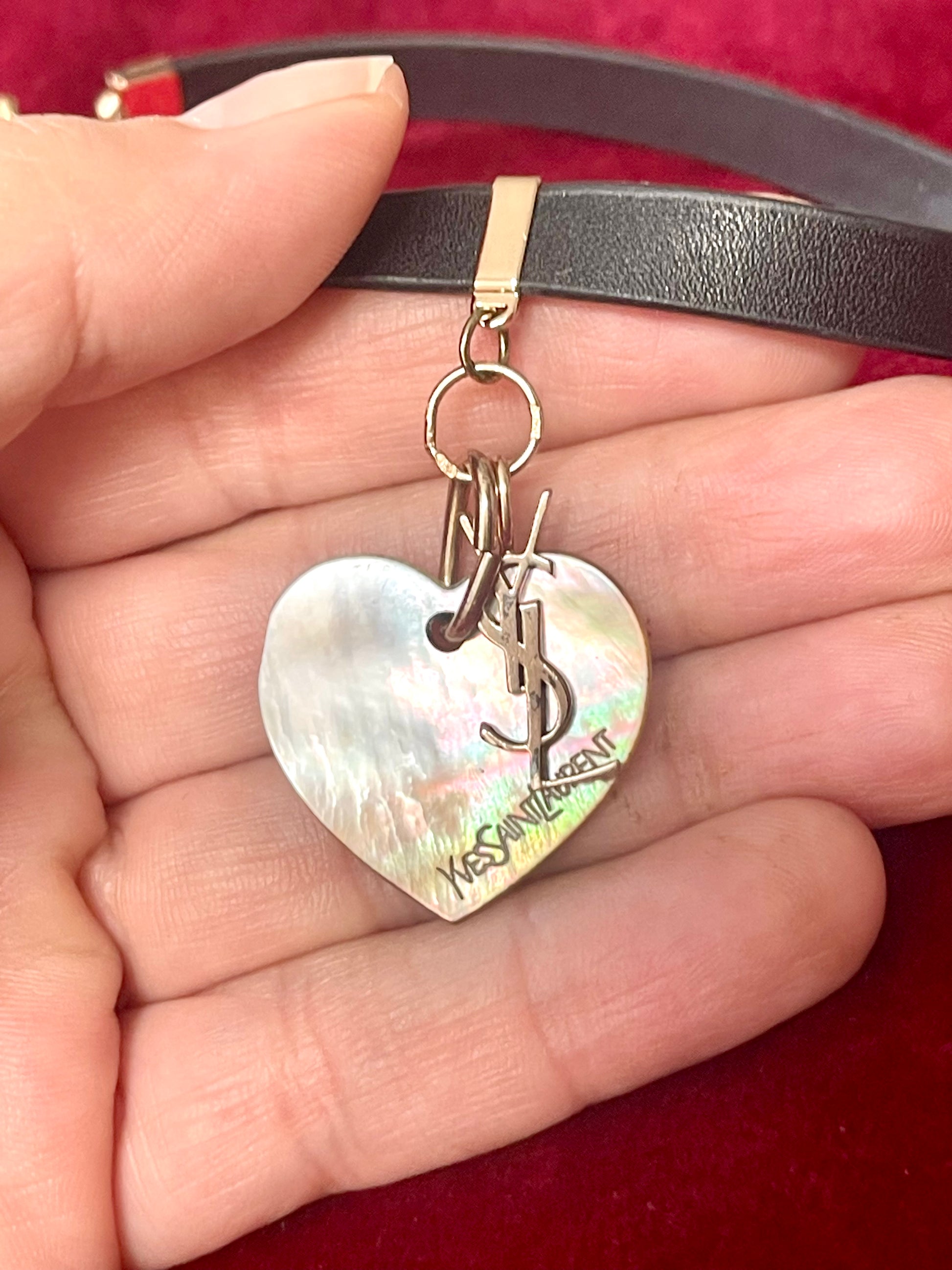 The leather cord complements the piece beautifully, giving it a chic, modern contrast while preserving the timeless YSL aesthetic.
