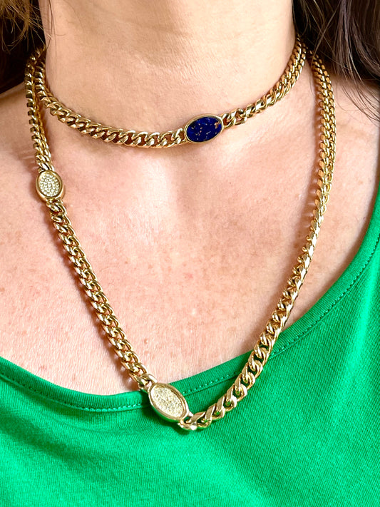Vintage Two-Sided Necklace by Grossé (Dior ) - Rhinestones & Blue Gold Leaf Stones