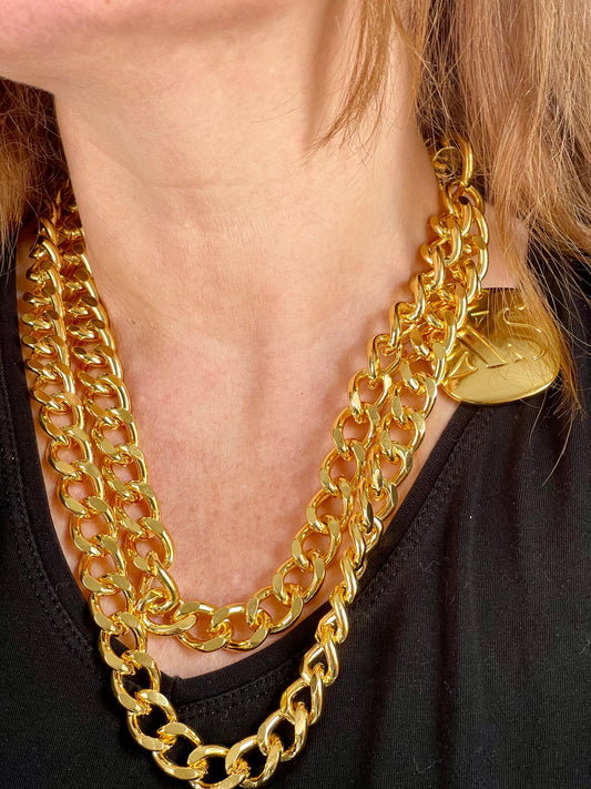 One of a Kind Vintage Paco Rabanne Black XS Chain Necklace — Refurbished 18K Yellow Gold Finish